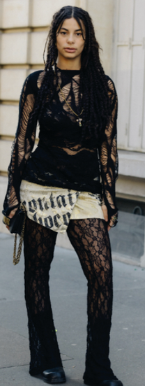 Underwear as Outerwear: Pieces inspired by lingerie and underwear were a prominent trend seen on the streets at Couture Fashion Week. Attendees incorporated bras, corsets, and lace details into their outfits, adding a sense of femininity and delicacy to edgier accessories. This trend was both romantic and daring, perfect for a modern and confident woman.